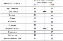 Для поступления в вузы установлено следующее минимальное количество баллов: по русскому языку – 36, по математике – 27, по физике – 36, по химии – 36, по информатике и информационно-коммуникационным технологиям (ИКТ) – 40, по биологии – 36, по истории – 32, по географии – 37, по обществознанию – 42, по литературе – 32, по иностранным языкам (английский, французский, немецкий, испанский) – 22 балла.