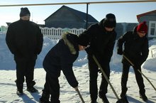 Тимуровский отряд 7 класса посетил подшефного труженика тыла Якупова Минивазиха Якуповича , ребята помогли по дому и убрали снег на дворе. -