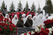 Затем ребята выступили с литературно- музыкальной композицией посвященной геноциду Советского народа, перед учащимися поселка городского типа Камские Поляны. -