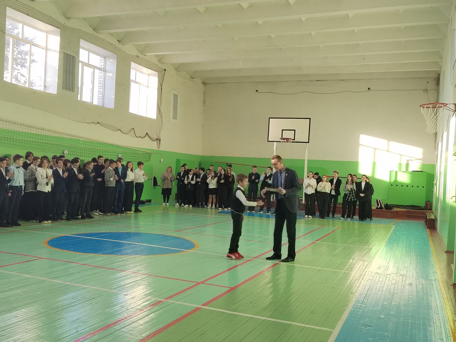 Учебный день закончился общешкольной линейкой, где чествовали победителей школьных, районных и республиканских конкурсов .