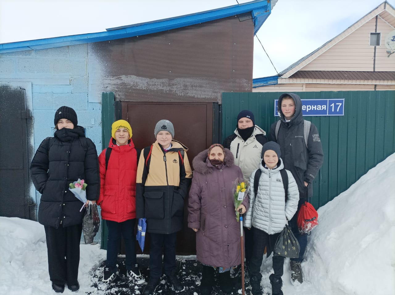 Опубликовано: 07.03.2023Ученики 4 и 7 А класса пожелали женщинам весеннего настроения , тепла, побольше радостных минут в жизни . Ветераны были очень тронуты вниманием детей и благодарили их за приятные минуты общения.