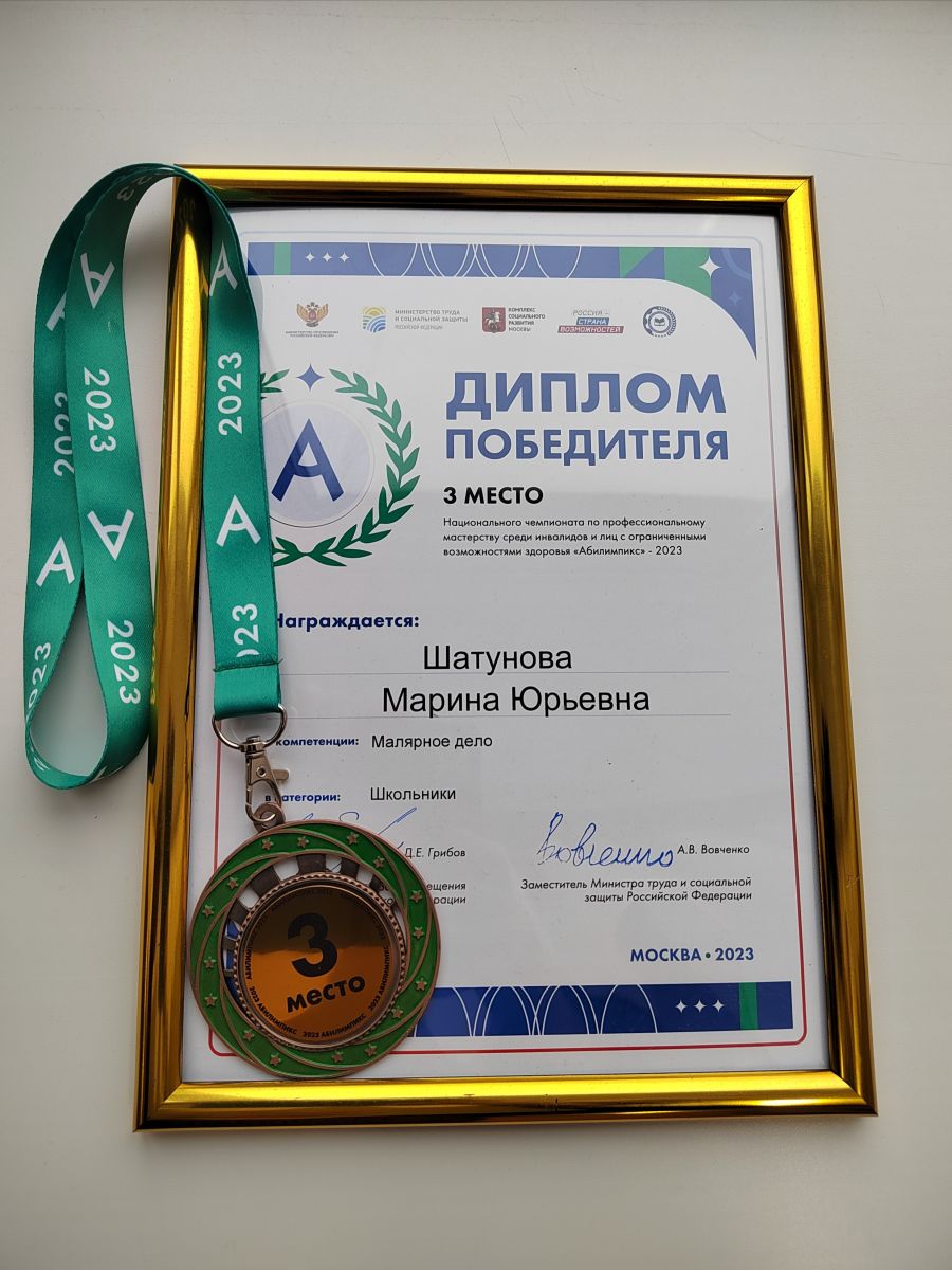 Марина Шатунова, ученица 8 А класса, стала призером в Национальном чемпионате по профессиональному мастерству среди инвалидов и лиц с ограниченными возможностями здоровья "Абилимпикс" 2023