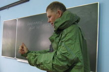 В школе прошел открытый урок по ОБЖ. Учитель ОБЖ рассказал о мерах предосторожности при чрезвычайных ситуациях, затем учащиеся старших классов продемонстрировали как пользоваться противогазами.