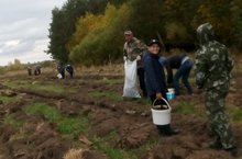 Учащиеся Державинской школы участвуют в экологическом десанте - сажают деревья.
