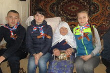 Мәктәп укучылары сугыш елларында мәктәбебездә эшләгән тыл ветераннарын Бөек Җиңү көне белән котладылар.