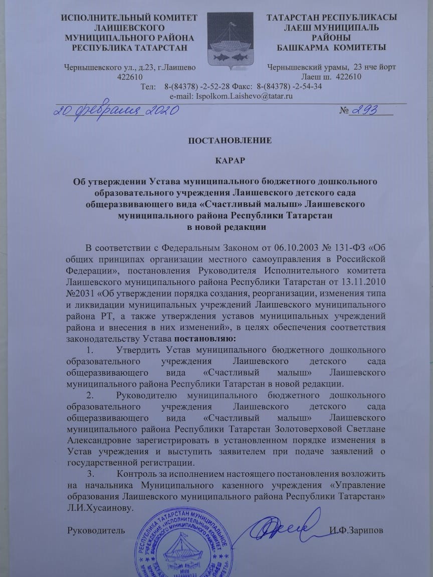 Устав МБДОУ Лаишевского детского сада "Счастливый малыш"