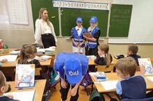 В конце ЮИДовцы раздали первоклассникам схемы "Мой безопасный маршрут" и подарили ребятам фликеры.