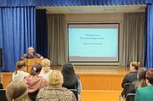 Перед слушателями выступила специалист ГБУ "Безопасность дорожного движения" Гульшат Айратовна Зайнуллина с докладом о профилактике нарушений ПДД школьниками, о необходимости использования детьми экипировки при передвижении на СИМ, о недопустимости использования детьми мототехники.