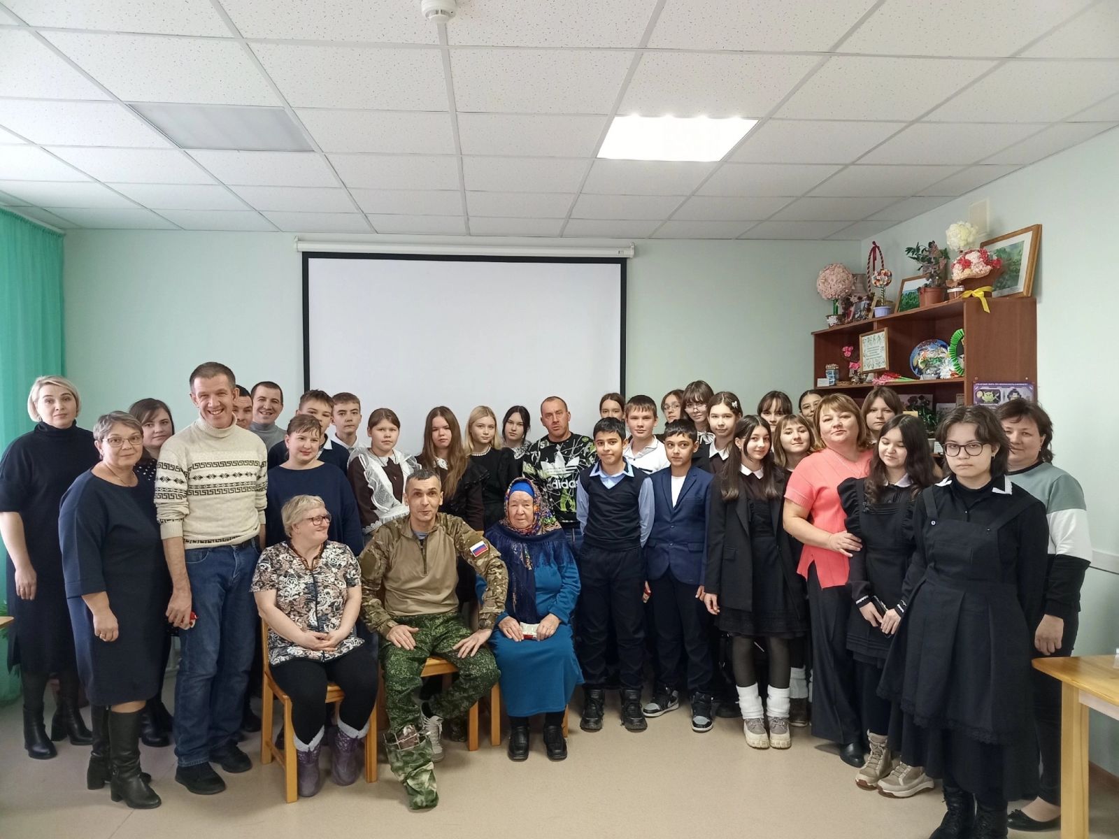 Опубликовано: 27.11.2024Учащиеся 7-го класса побывали на встрече с участником специальной военной операции Гумаром Нурулловичем Насибуллиным в КЦСОН «Золотая осень"