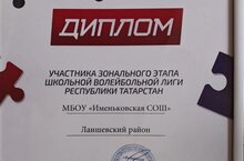 Имәнкискә урта гомуми белем бирү мәктәбенең волейбол буенча кызлар җыелма командасы Школьная Волейбольная Лига уеннарының зона этабында катнашучылар дипломы белән бүләкләнде.