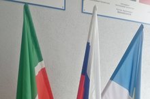 Государственный флаг Российской Федерации и государственный флаг Республики Татарстан с озвучиванием мелодий гимнов России и Татарстана. -