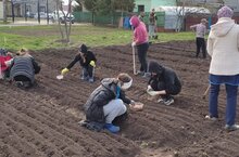Бүген, 4нче май көнендә, мәктәп бакчасында эш гөрләде...Җир сукаланып тырмаланды, түтәлләр ясалып сызылды, суган, кишер, чөгендер, чәчәк орлыклары утыртылды...
