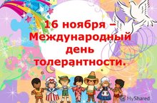 16 ноября — Международный день толерантности (терпимости). Слово «толерантность» произошло от латинского «tolerantia» – терпение. И означает терпимость к чужому образу жизни, поведению, обычаям, чувствам, мнениям, идеям, верованиям…