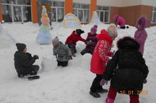 Прекрасная погода стоит на дворе! Самое время для детских забав. Вот и решили ребята в продлённой группе во время прогулки построить снежные фигуры. Отличное решение! Молодцы ребята!