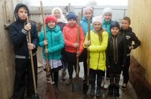 Учащиеся начальных классов Кирбинской школы первыми вышли на уборку территории школы. Они работали с удовольствием.
