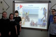 3 декабря в школе-интернат состоялся единый классный час на тему «Добру откроются сердца», приуроченный к Международному дню поддержки инвалидов, главной целью которого было воспитание чувства ответственности за свое здоровье, здоровье своих близких, окружающих и готовность воспринимать здоровье как ценность человеческой жизни.
