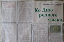 В рамках недели Родного языка учащимися школы выпущена стенгазета, посвященная Дню родного языка, в которой содержится интересный материал из истории этой знаменательной даты. Дети предлагают читателям также стихи великих писателей о языке, о родине, о матери, разгадать кроссворд, тематически связанный с родным языком.