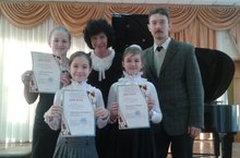 с 28 - 30 ноября ученики Детской школы искусств приняли участие во Всероссийском конкурсе детского и юношеского творчества "Звездная карусель" в г.Зеленодольске. Лауреатами 2 степени стали Новиков Артем в номинации эстрадный вокал и Ермолаев Никита в номинации инструментальное исполнительство.Звания дипломантов удостоены Сутугина Дарья и дуэт Аитова Гулия и Исмагилова Ясмина. на фото Хоботина Д.В. и ученики Новиков А.,Исмагилова Я., Аитова Д. 01.12.2014