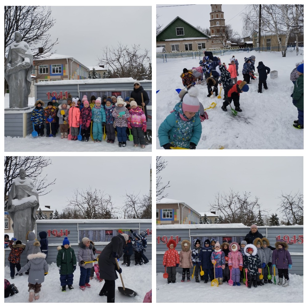 Затем провели операцию "Памятник". Где дети очищали территорию памятника неизвестному солдату от снега. -