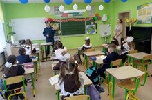 Сегодня в начальных классах сотрудником МЧС, Закировым И.И., был проведен инструктаж по пожарной безопасности. Также, он рассказал о пожарах, случившихся в Лаишевском районе, раздал памятки с инструктажами "Действия при пожаре".