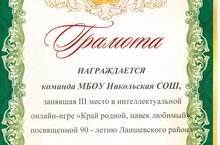 Поздравляем команду 5-6 классов нашей Никольской школы, занявшую 3 место в интеллектуальной онлайн-игре "Край родной, навек любимый", посвященной 90-летию Лаишевского района.