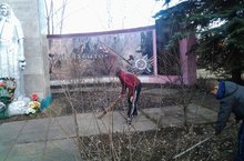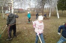Ребята 3-4 классов вышли на уборку территории памятника погибшим воинам "Скорбящая мать"