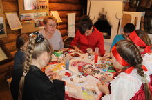 Полным ходом идет подготовка к фольклорному фестивалю "Каравон". Ребята проводят мастер-классы по изготовлению женского украшения "Борок" из бус и бисера.
