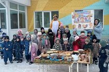 Сегодня в нашем детском саду отпраздновали Масленицу. Крокодил Гена и Жираф Тоша водили с детьми хороводы, играли в хороводные игры и угощали детей вкусными блинами.