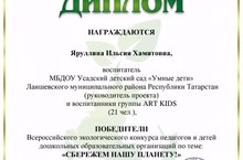 Всероссийский экологический конкурс педагогов и детей дошкольных образовательных организаций по теме: "СБЕРЕЖЕМ НАШУ ПЛАНЕТУ!"