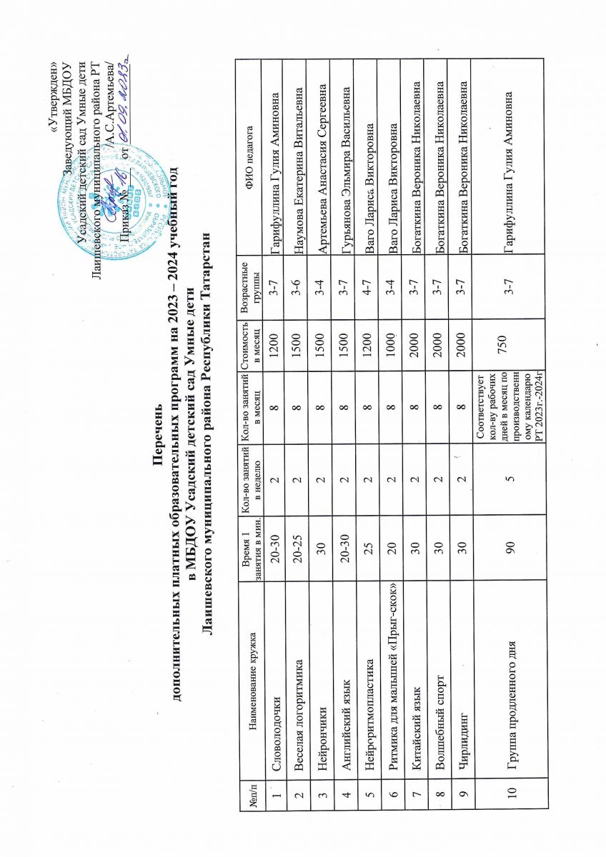 Перечень дополнительных платных услуг на 2023-2024 уч.г.г.