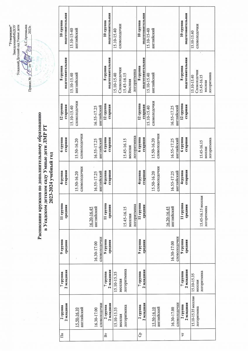 Расписание кружков по дополнительному образованию на 2023-2024 уч.г.г.