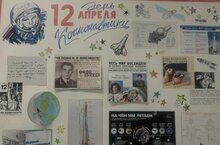 1–4 классы постарались на славу: макеты планет, ракет и спутников, яркие рисунки, плакаты — всё посвящено 65-летию первого полёта человека в космос