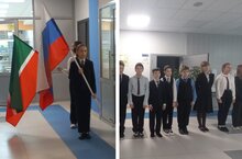 По традиции каждый понедельник учебной школьной недели начинается с торжественной линейки, выноса флага и исполнении гимнов России и Республики Татарстан