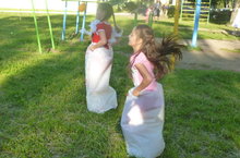 У нас сегодня школьный Сабантуй. Праздник начался с танцевального марафона. После танцев все дети перешли на спортивную площадку, где играли, участвовали в в различных играх и атракционах. Всех участников наградили призами. 05.06.2015