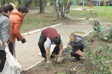 Благоустройство и озеленение школьной территории продолжается. Сегодня ученики 6 класса посадили ещё 25 розы. Летом наши клумбы будут радовать нас своей красотой. 20.09.2014