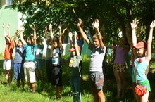 Пришкольный лагерь труда и отдыха "Радуга". День начинается с физзарядки. 08.07.2014