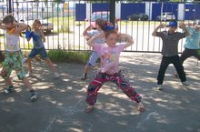 "День здоровья" сегодня в пришкольном лагере "Радуга". День начался веселой зарядкой. А завершился "Веселыми стартами" 04.06.2014