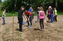 Сегодня на пришкольном участке ученики 5 класса сажали томаты и перец. Рассаду вырастили сами в своем классе. 23.05.2014