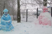 В преддверии Нового года в школе появились снежные фигуры Деда Мороза и Снегурочки.