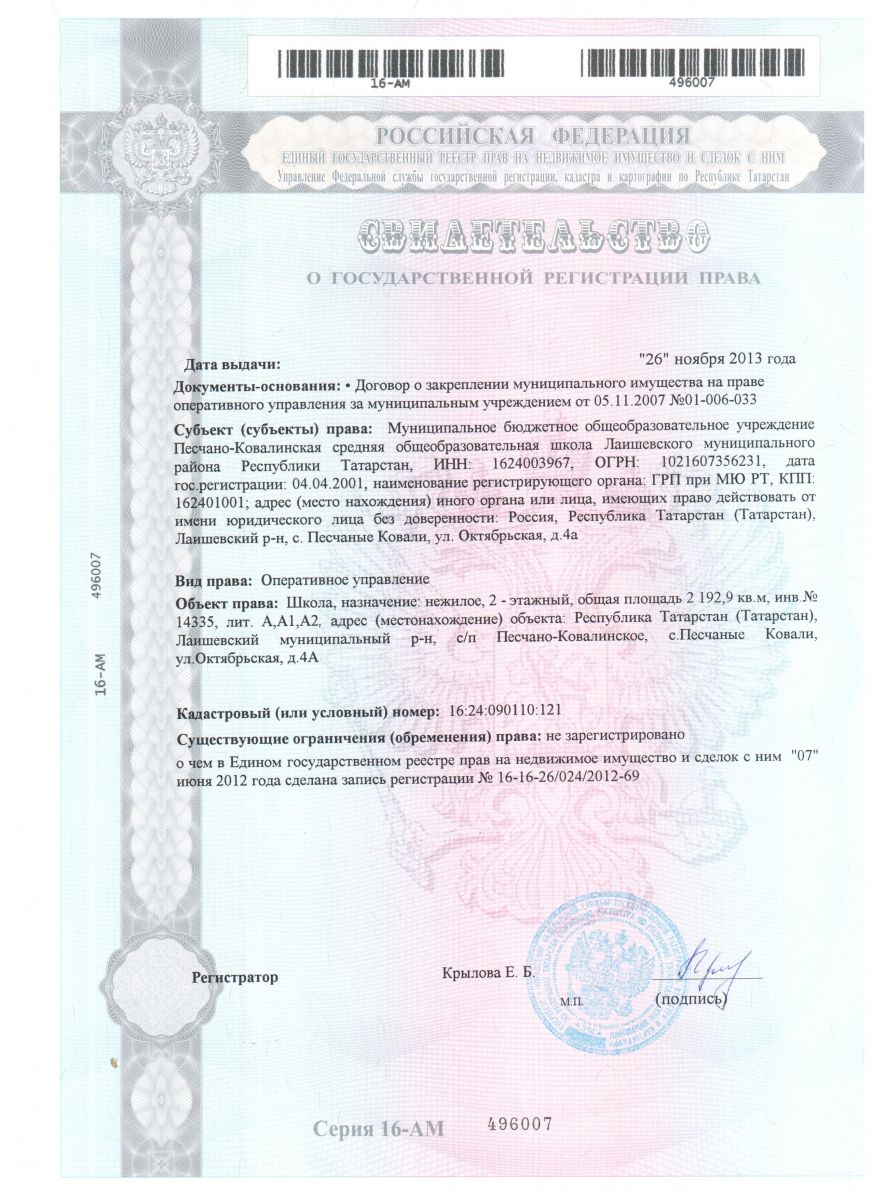 Муниципальное бюджетное общеобразовательное учреждение Песчано-Ковалинская средняя общеобразовательная школа Лаишевского муниципального района Республики Татарстан/ МБГБУ Татарстан Республикасы Лаеш муниципаль районы Комлы Кавал гомуми урта белем мәктәбе