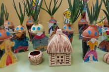 Сперва изучили какие нужны условия, чтобы вырос лук, нарисовали одежду для героев сказки, посадили лук. Такой урожай у нас получился."Карлыгач" өлкән төркеме балалары "Чипполино маҗарасы"әкиятен карадылар. Һәм "Чипполино белән суган утырту" проектын эшләргә булдык. Башта суганны үстерү өчен нинди шартлар кирәклеген тикшерделәр, әкият геройлары өчен киемнәр ясадылар, суган утырттылар. Мондый уңыш бездә килеп чыкты -