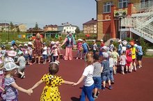 Дети весело кружились на площадке перед зданием детского сада.