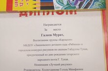 26 апреля 1886 года — дата рождения татарского поэта, литературного критика, публициста и переводчика Габдуллы Тукая. И в предверии дня рождения наши воспитанники Лаишевского детского сада "Рябинка" приняли активное участие в конкурсе рисунков по иллюстрациям Габдуллы Тукая. Все ребята подготовили рисунки. Они оказались яркими, красочными и содержательными. Ребятам были вручены дипломы и памятные подарки.