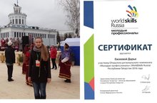 С 6 по 10 апреля г. Казани проходил Открытый региональный чемпионат "Молодые профессионалы (WorldSkills Russia) Республики Татарстан 2016 года. В нем принимала участие и стала призером ученица 9 класса МБОУ "СОШ пос. им. 25 Октября" Евсеева Дарья, руководитель Иванова Любовь Григорьевна. 11.04.2016