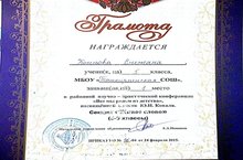 24 февраля учащиеся нашей школы принимали участие в научно-практической конференции, посвящённой памяти Ю. Коваля. В номинации «Исследовательская работа по творчеству М.Ю. Лермонтова достойные места получили учащиеся 5 класса (Коннова С. – 1 место, Казанбаева К. – 3 место). Номинацию «Лучший слайдовый ряд» представляла ученица 7 класса Кузнецова К.