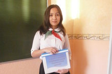 Ученица 9 класса Лаишевской ООШ №3 Ситдыкова Гузалия приняла участие в муниципальном туре республиканского конкурса «Замечательный вожатый - 2017» и стала победительницей в номинации «Самый юный отрядный вожатый». Поздравляем!!! 28.01.2017