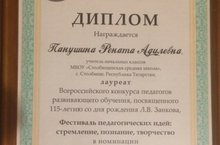 9 декабря в Москве в Академии повышения квалификации и профессиональной переподготовки работников образования состоялся финал Всероссийского конкурса педагогов развивающего обучения. Учителя начальных классов Столбищенской СОШ – Мусина Э.Ф. и Панушина Р.А. стали участниками этого конкурса. Домой они вернулись с наградами: Эльвира Фаридтовна стала победителем этого конкурса в группе "Учитель-профи", а Панушина Рената Адилевна - лауреатом в группе "Педагогический дебют". Знай наших! 19.12.2016