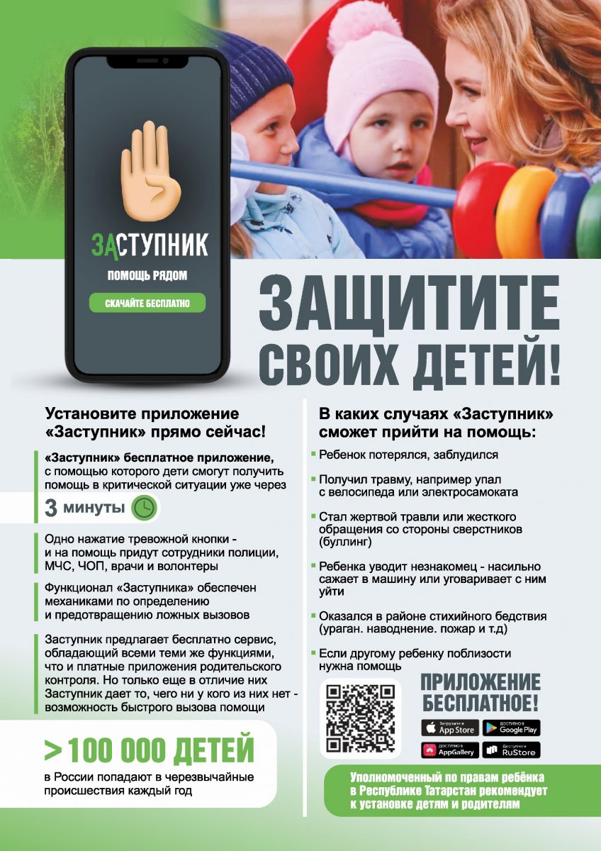 Информационный лист по проекту «Заступник». Данный проект реализуется по поручению Раиса Республики Татарстан Р.Н. Минниханова от 20.08.2024 № 40444-МР и во исполнение пункта 8.6 Протокола заседания антитеррористической комиссии в Республике Татарстан от 13.09.2024 № ПР-182, под эгидой Уполномоченного по правам ребенка в Республике Татарстан, в сотрудничестве с Министерством образования и науки Республики Татарстан и Министерством внутренних дел по Республике Татарстан.