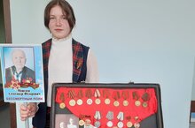 Артемьева Лидия, ученица 8 класса, приняла участие в конкурсе, она рассказала о своём прадедушке, Моисееве А. Ф., участнике ВОВ.