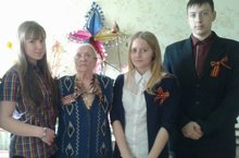 Акция «Георгиевская ленточка» стартовала сегодня в России. В этом году она проходит в 11 раз Георгиевская ленточка –символ уважения к участникам войны и гордости за великую Победу, дань памяти павшим на поле боя, благодарность людям, отдавшим все для фронта. Учащиеся 11 класса нашей школы повязали Георгиевскую ленточку участнице Великой Отечественной войны Наумовой П. Ф. с наступающим праздником Великой Победы, уважаемая Прасковья Фёдоровна! Здоровья Вам, мирного неба над головой!
